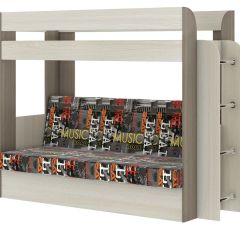 Кровать 2-х ярусная с диваном Карамель 75 (Газета) Анкор светлый/Бодега | фото