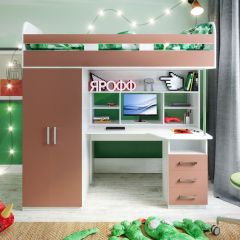 Кровать-чердак "Дюймовочка-4/3" рассчитана на двоих детей, так как объединяет два полноценных спальных места. Выдвижная нижняя кровать может устанавливаться в удобном положении для сна в ночное время и убираться в дневное время. Под кроватью имеется ящик для белья и открытые ниши. В лестнице предусмотрены выдвижные ящики для хранения вещей. Такой уголок экономит пространство в детской комнате. Кровать подойдет детям от 2 до 18 лет.