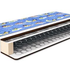Упругий  матрас c наполнением из кокосового волокна. Этот природный  материал, пропитанный латексом, обладает бактерицидным свойством, устойчив к любой влажности и сохраняет свои характеристики в течение многих лет. Рекомендуется для детей любого возраста без нарушений осанки.