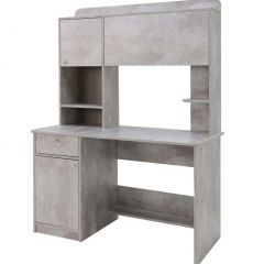 Уникальный компьютерный стол с встроенной тумбой и надстройкой, оснащенной функциональными ящиками.