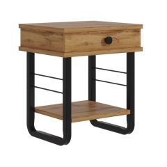 Тумба прикроватная "Грета" с коваными элементами, ЛДСП дуб вотан/металл черный